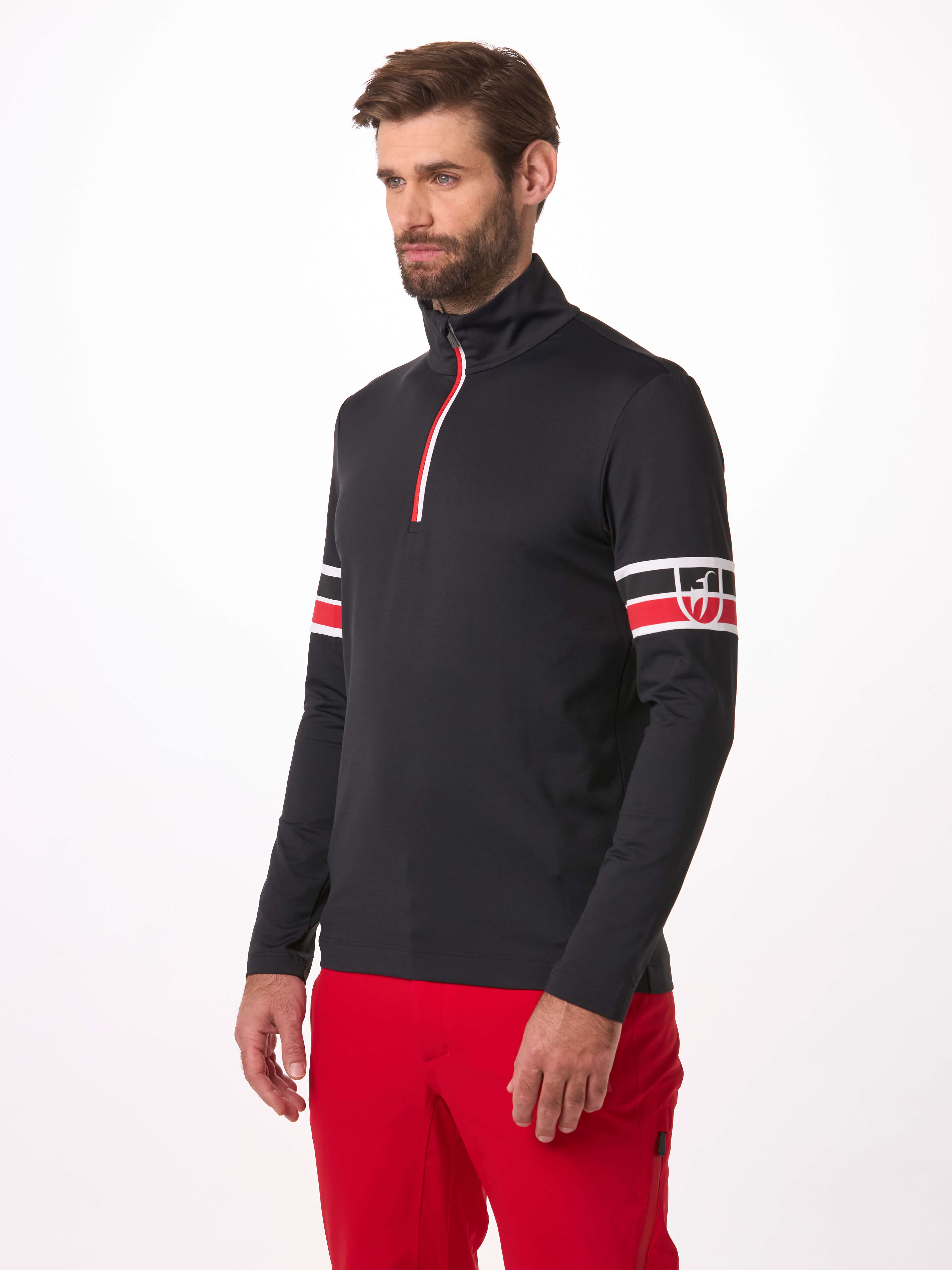 Designed for comfort and performance on the slopes, the MATEO men’s first layer is made from a lightweight, breathable, and quick-drying functional jersey from France. Signature accent stripes add to the sporty look, which is completed by the YKK® zipper.