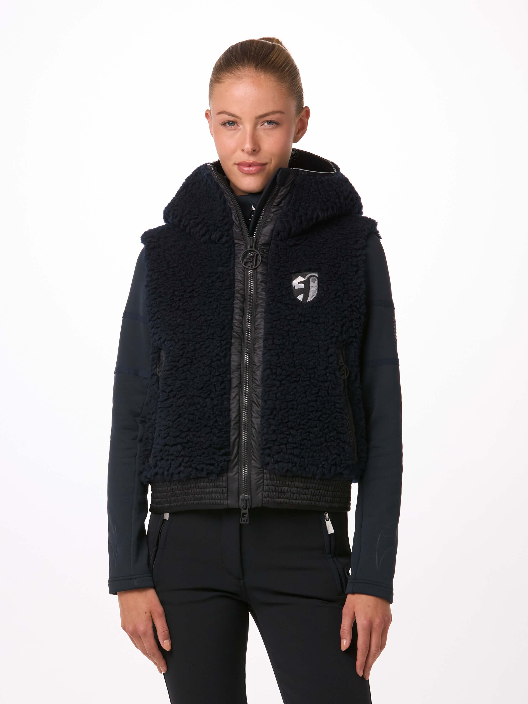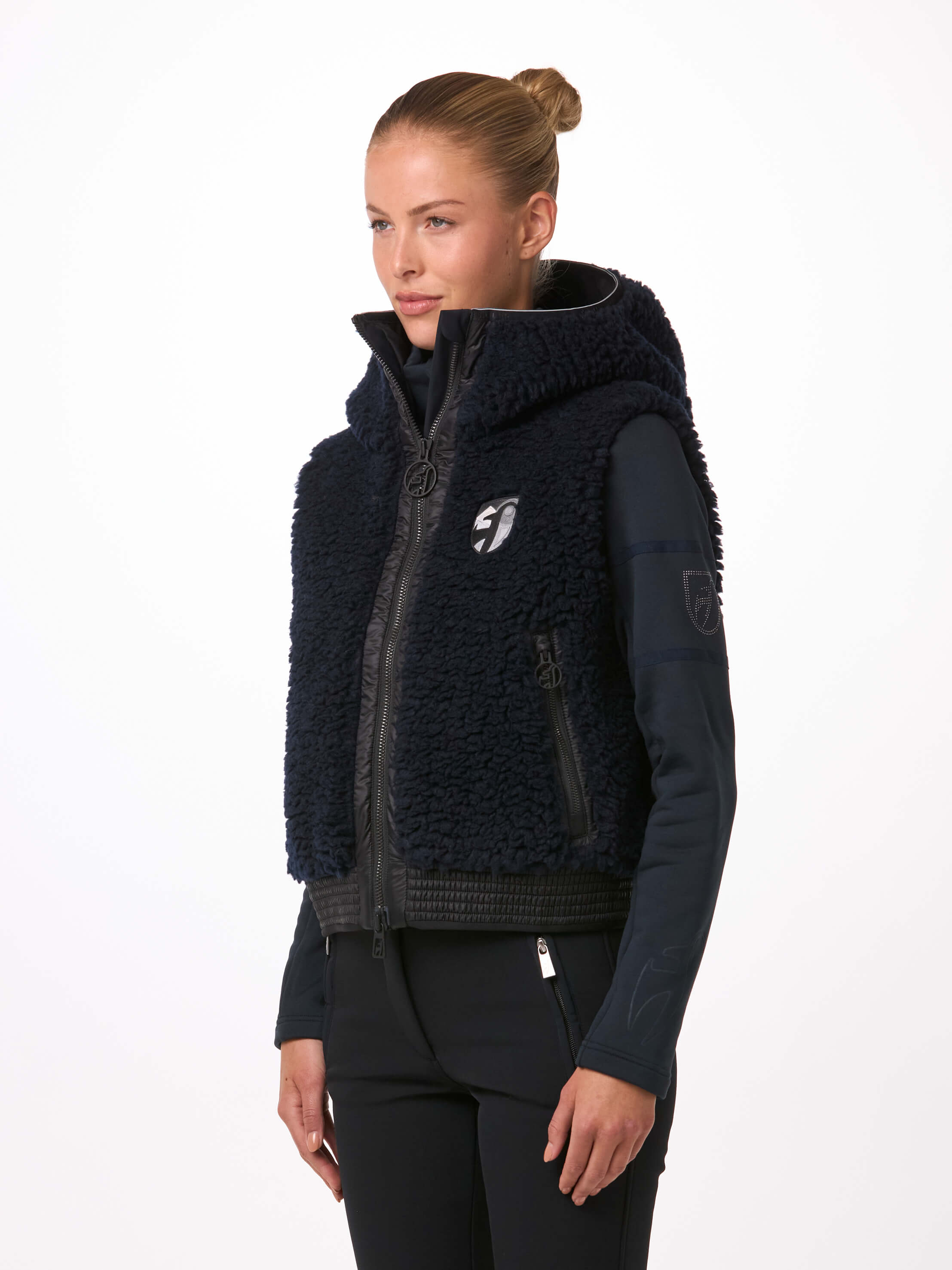 Die Damen-Weste JETTI von Toni Sailer ist vielseitig – perfekt für Après-Ski-Outfits, urbanen Stil oder als It-Piece über Ihrem Overall. Ein hochfloriger, recycelter Teddy-Pile verleiht ihr eine High-Fashion-Note, während das Softshell-Material eine exzellente Passform und Komfort garantiert. Darüber hinaus bietet die Weste dank einer PU-Membran auf der Innenseite atmungsaktive, winddichte und wasserdichte Eigenschaften. Die YKK® METALUXE®-Reißverschlüsse an der Vorderseite und den Taschen sind die perfekte Ergänzung.